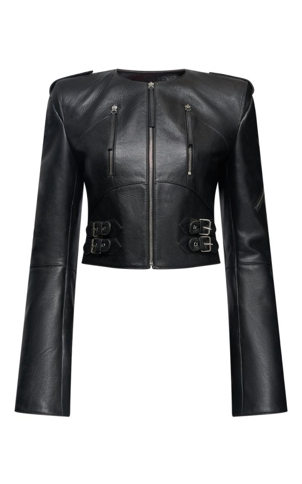 The standout leather biker Phanes jacket is created in black distressed leather. With a constructed shoulder detail and traditional biker zip finishing In a slim short fit that hugs the form