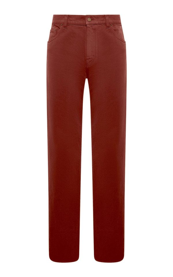 offering a lightweight feel with a structured look. Designed with a classic five-pocket construction and a straight-leg silhouette